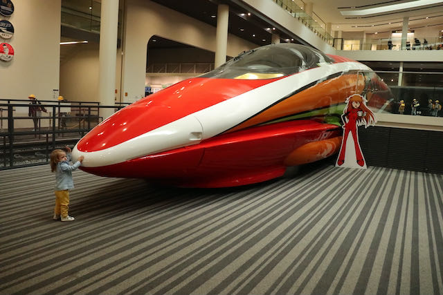 Après le petit-déjeuner et une petite sieste, nous allons au musée du train, qui se trouve à 10 minutes à pied. Il y a de vieux trains à vapeur, jusqu’au shinkansen Evangelion! Et tout est super bien expliqué (en japonais et en anglais). Nous y prenons notre pause repas, et y restons le début de l’après-midi.